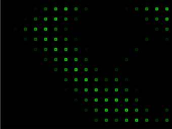 Cząsteczki poruszają się po ekranie wykorzystując modele zaczerpnięte ze świata przyrody. Autor inspirowany był między innymi ruchami cząsteczek gazu, wirami w cieczy lepkiej czy ruchem ciężarka na sznurku. Kwadratowe cząsteczki rozpryskują się jak fajerwerki, falowo przepływają przez ekran lub wirują dookoła siebie.